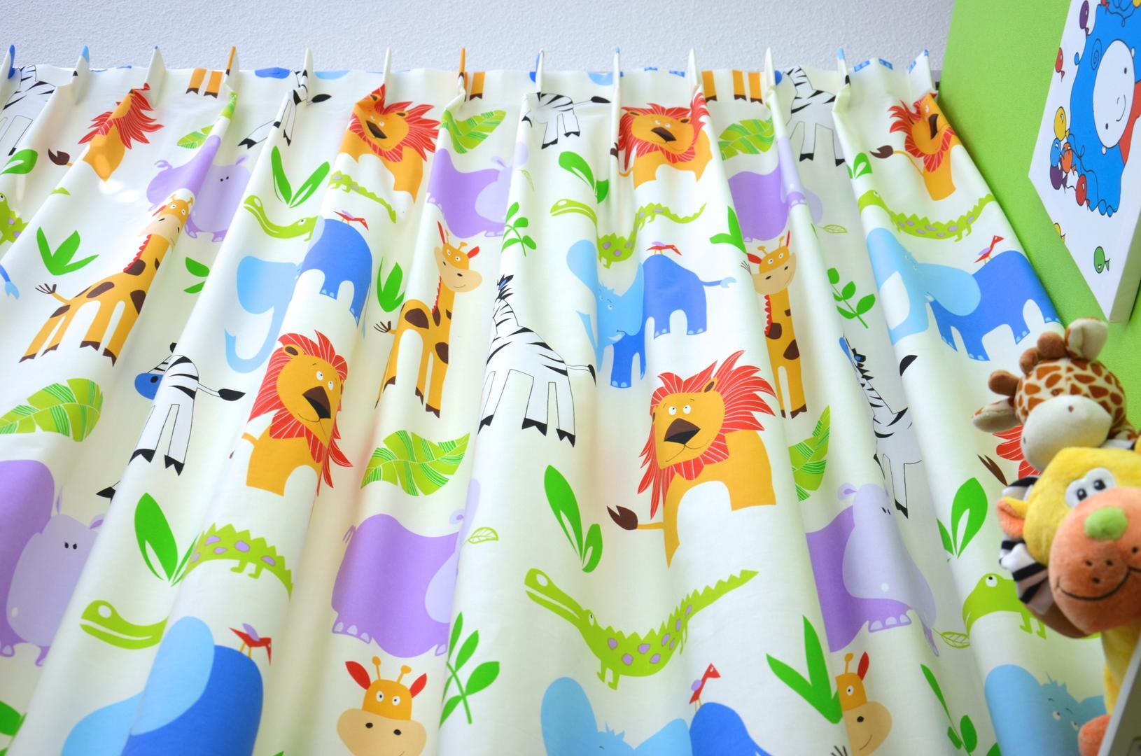 Wat een feest als we naar de dierentuin zijn geweest! En met dit gordijn kan jij dat vrolijke gevoel óók op je slaapkamer krijgen. Leeuwen, zebra’s en Ollie de olifant, allemaal willen ze graag een plekje voor jouw raam. De print is op de voorzijde gedrukt op de matte en dicht geweven stof. De ondergrond lijkt daardoor mooi glad en de ondergrond is warm roomwit van kleur. De stof is kamerhoog, waardoor je voor hetzelfde bedrag het gordijn tot de grond kunt laten maken. De tinten van de dierentuindieren zijn helder en sprankelend gekozen, echt favoriet bij jonge peuters en kleuters. Kleurrijk en prikkelend voor de fantasie. Wil jouw eigen ‘tijger’ graag donker slapen, laat het gordijn dan even voeren.